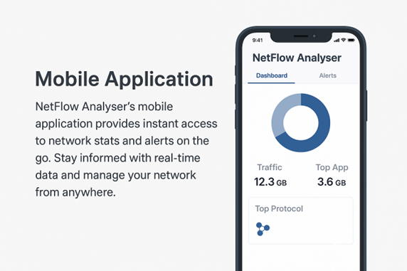 The NetFlow Analyzer mobile app brings real-time network visibility to your fingertips. IT admins can monitor bandwidth usage, track top applications, users, and conversations, and receive instant alerts directly on their mobile devices. With drill-down reports and quick troubleshooting tools, the app ensures seamless network monitoring and faster incident response—even when you’re away from your desk.