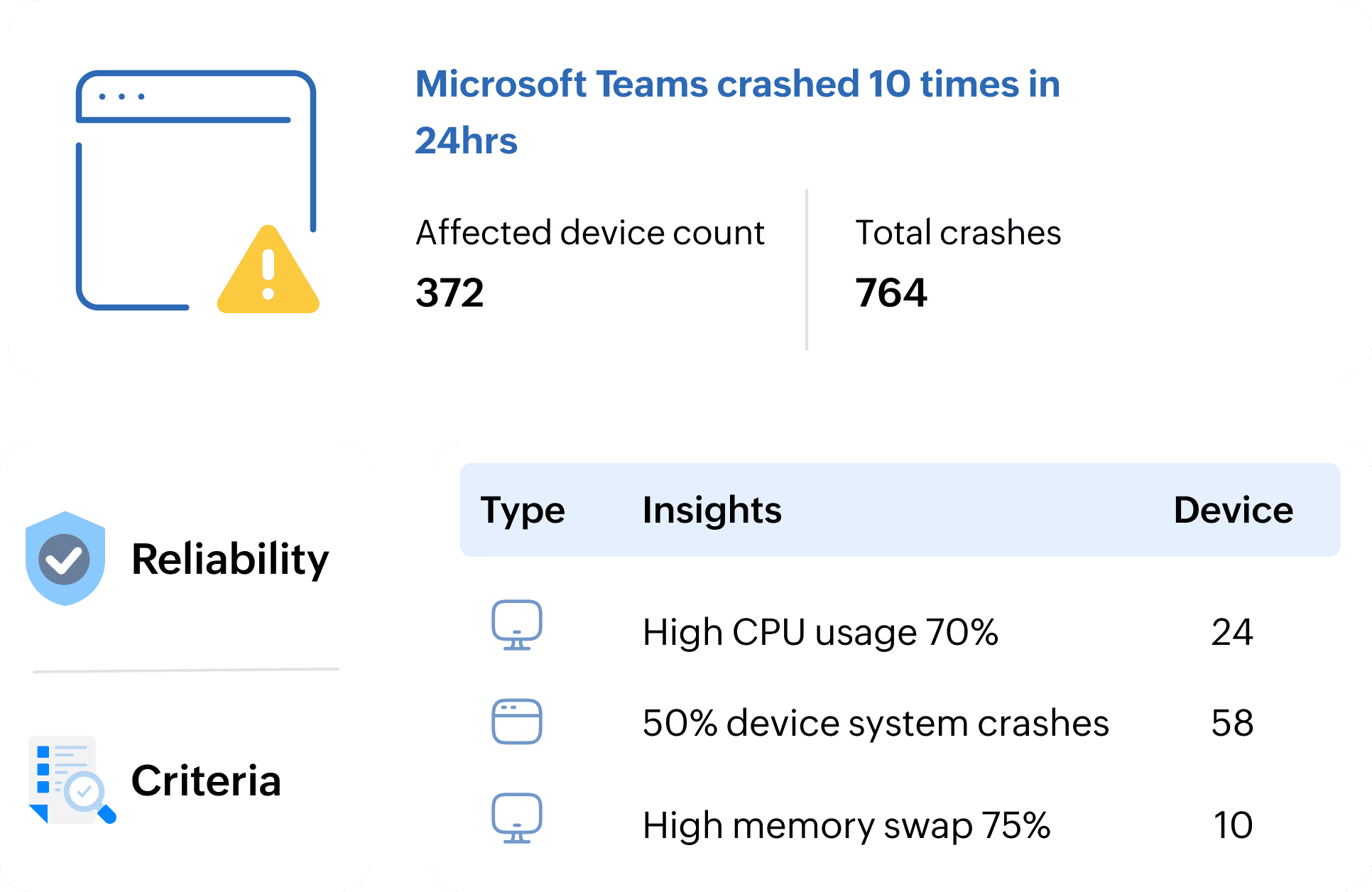 - Zet silent scripts of workflow-gebaseerde oplossingen in voor veelvoorkomende problemen zoals app-crashes, trage opstart, piekbelasting, en meer.